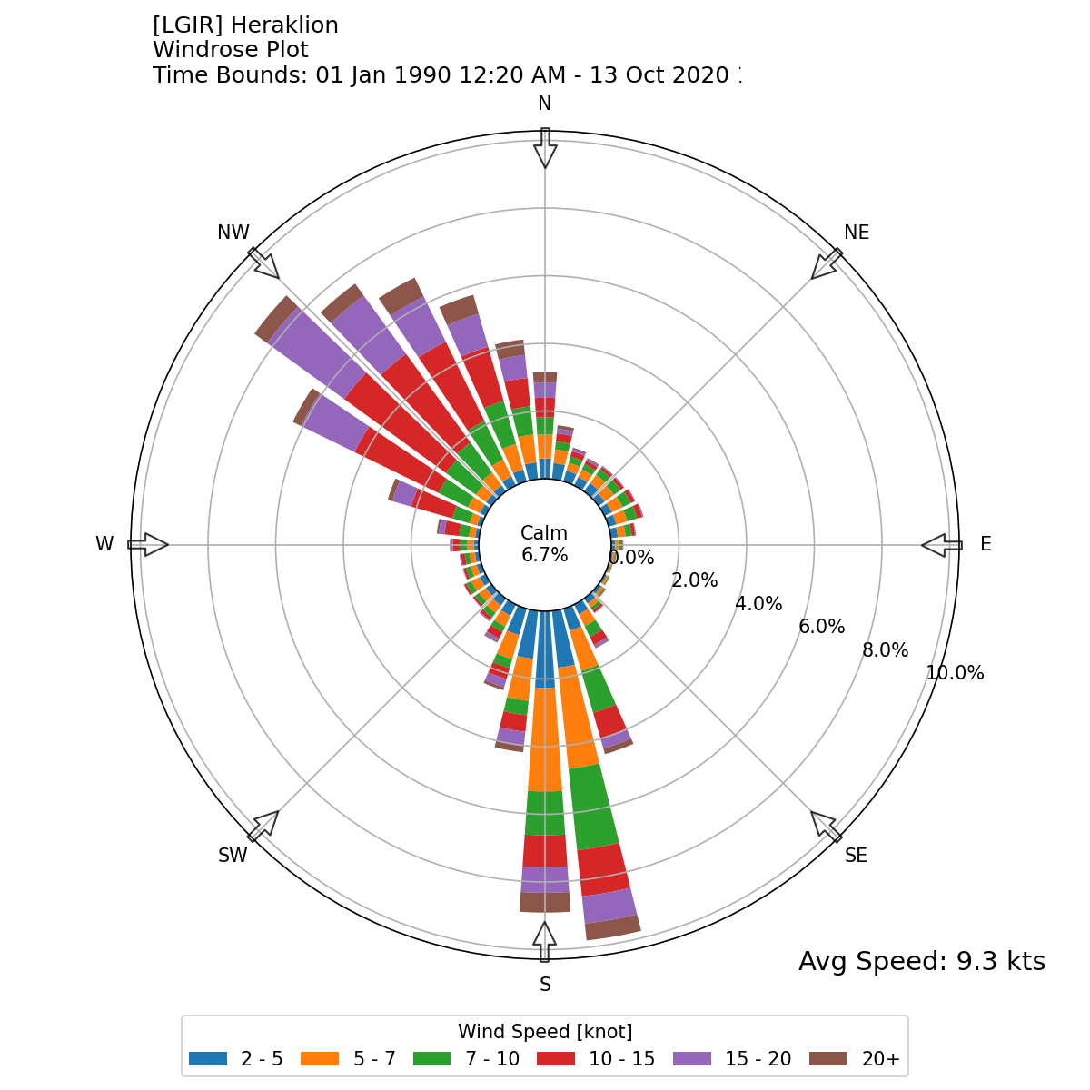 Παρακατω θα δωθουν τα γραφηματα ανεμου απο διάφορους επισημους μετεωρολογικους σταθμους της Ελλαδας της Εθνικης Μετεωρολογικης Υπηρεσιας(ΕΜΥ) για το διαστημα 1990-2020 οπου ηταν δυνατον.