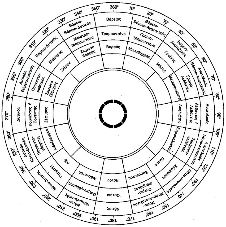 Στην παρακατω εικονα φαινονται ολοι αυτοι οι ανεμοι και πως αποκαλουνται στην Ελληνικη διαλεκτο.