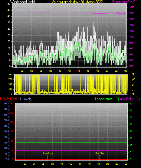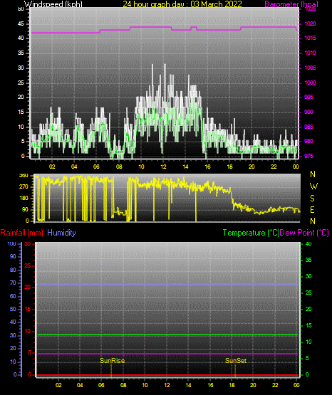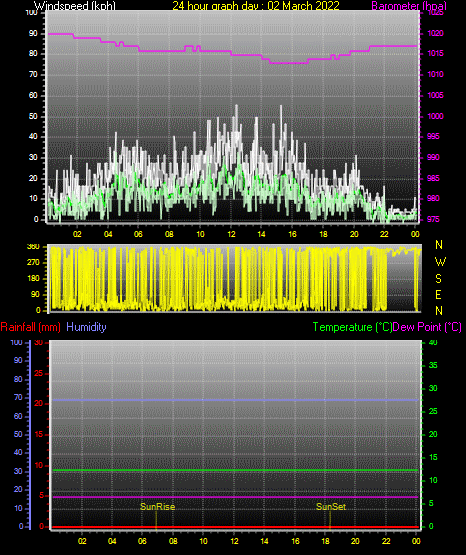 | Maximum windspeed | 35.2 kmh from 054°(NE) on 02 at 15:33 |