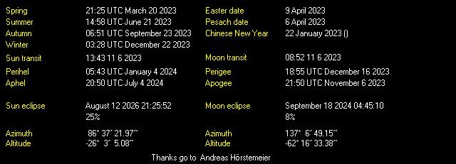 | Sunrise: 07:40 Sunset: 19:47 Daylight: 12:07 |