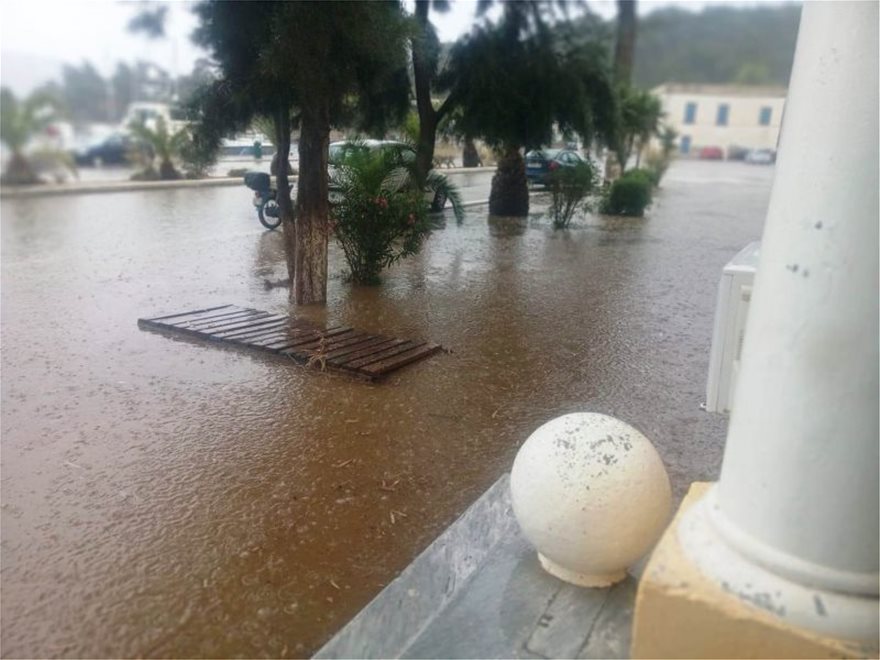 Πλημμυρες και καταστροφες εχουν προκαλεσει οι ισχυρες καταιγιδες που πληττουν απο το πρωι τα νησια του ανατολικου Αιγαιου με μεγαλη σφοδροτητα.
