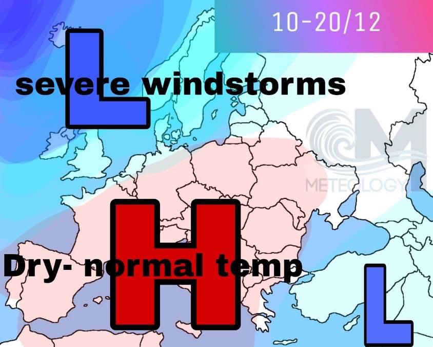 Καιρικά σε δύο χρονικές φάσεις, θα χωριστεί ο πρώτος μήνας του Χειμώνα. Το διαδοχικό σερί βαρομετρικών συστημάτων, που έδωσαν μεγάλα ύψη βροχής και προβλήματα στην δυτική Ελλάδα, αναμένεται να σταματήσει ήδη στο πρώτο 10ήμερο του μήνα. Η καιρική αυτή ‘ παύση’, θα γίνει καλοδεχούμενη, καθώς θα δώσει- ιδιαίτερα στα δυτικά- την ευκαιρία να εκτελεστούν εξωτερικές εργασίες. Χοντρικά λοιπόν, το διάστημα περίπου από τις 10 του μήνα μέχρι και τις 20 (χάρτης 1 ), αναμένεται καλοκαιρία στην Μεσόγειο, χωρίς αξιόλογα βαρομετρικά συστήματα, ενώ και η θερμοκρασία θα παραμείνει σε ήπια επίπεδα. Αντίθετα, στην ΒΔ Ευρώπη, βίαιες κυκλογενέσεις θα δώσουν εξαιρετικά βαθιά βαρομετρικά χαμηλά προκαλώντας σφοδρούς ανέμους και ισχυρές βροχές. Μετεωρολογικά, είναι αυτό που λέμε < ζωνική ροή>.