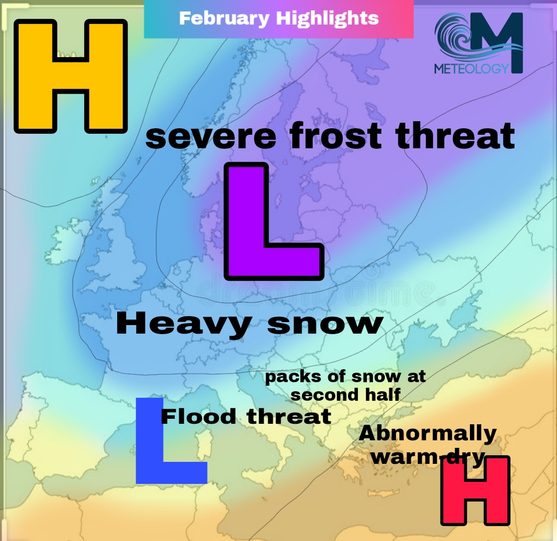 Η δίνη αυτή, θα πρέπει να χωρίσει την Ευρώπη στα δύο. Σε έναν ” κατεψυγμένο” βορρά αλλά και κεντρική Ευρώπη, όπου το ψύχος θα είναι ιδιαίτερα έντονο, και έναν Ευρωπαϊκό νότο, με έμφαση την χώρα μας και την ανατολική Μεσόγειο, όπου οι νοτιάδες και οι εξαιρετικά υψηλές θερμοκρασίες θα κυριαρχούν ιδιαίτερα στο πρώτο μισό του. Στο σημείο που αυτές οι δύο αέριες μάζες θα συναντιούνται, θα έχουμε και εκδήλωση έντονων καιρικών φαινομένων.