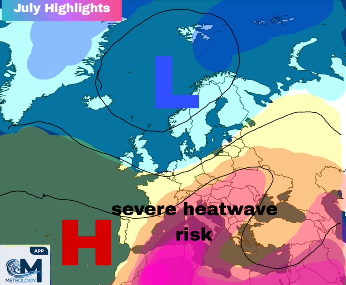 ‘Εχουμε όμως και μια διαφοροποίηση, σε σχέση με το πως εξελίχθηκε ο Ιούνης, όσον αφορά τις καταιγίδες! Υπάρχουν αρκετές πιθανότητες, η έξοδος από τις υψηλές θερμοκρασίες, να συνοδευτεί από το πέρασμα μιας ή περισσοτέρων διαταραχών, δίνοντας μετά από πολλές πολλές ημέρες , ισχυρές καταιγίδες. Τούτο δεν το αποτυπώνω στον χάρτη, καθώς αν συμβεί θα είναι σύντομο ( όχι όμως αμελητέο) και δεν θα είναι ικανό να ορίσει τον χαρακτήρα όλου του μήνα. Θα μπορέσει όμως, να σπάσει την ιστορικά χαμηλή απόδοση σε βροχές/καταιγίδες που έδωσε ο Ιούνης. Η κύρια ανησυχία στην παραπάνω εξέλιξη, είναι το οτι οι καταιγίδες, λόγω των πολύ υψηλών θερμοκρασιών, θα έχουν πολύ ισχυρό χαρακτήρα, εάν τελικά αυτές έρθουν. Γενικά είναι μια εξέλιξη που θα την παρακολουθούμε και στα τακτικά δελτία μας.
