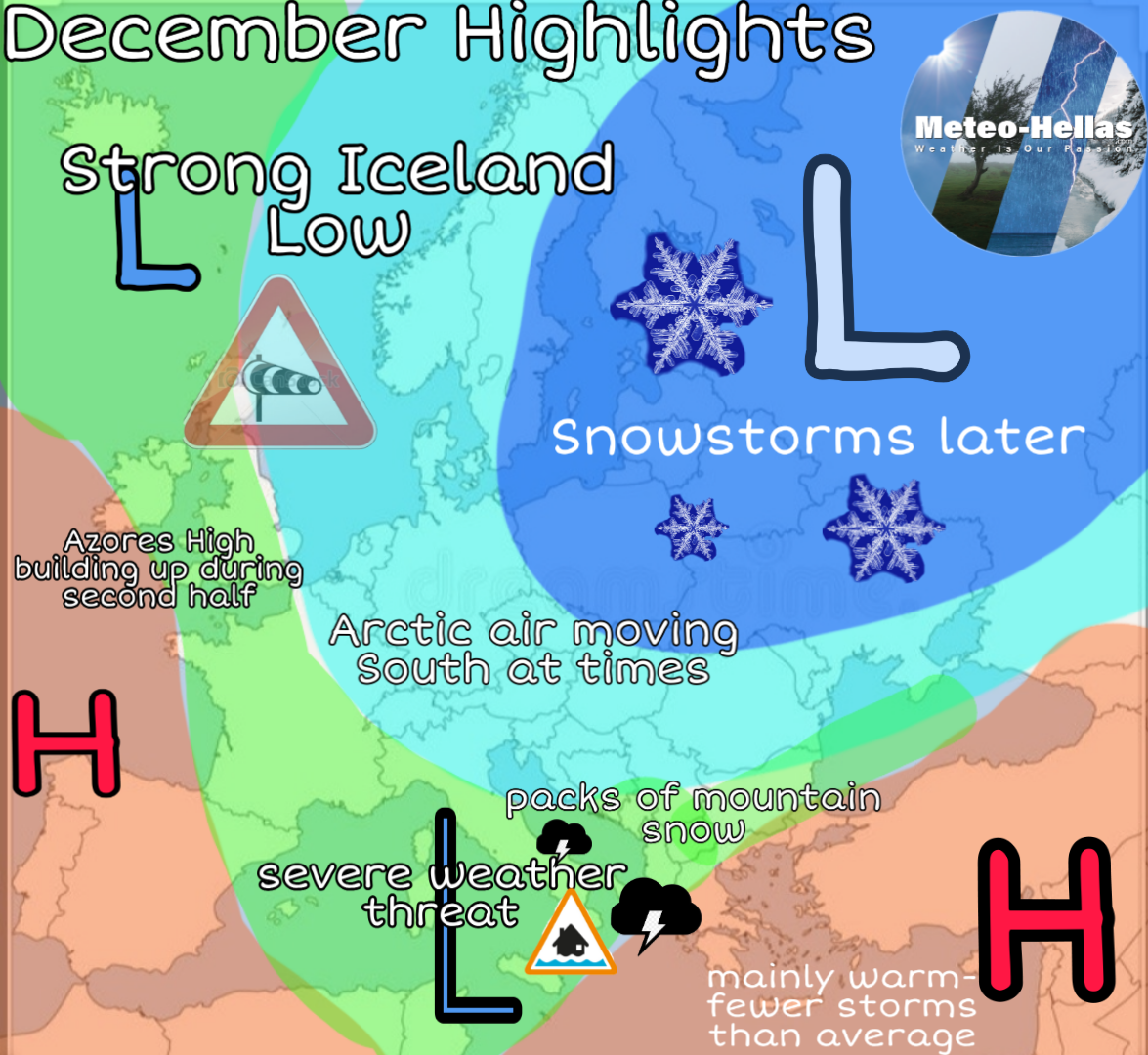 Ένας αρκετά πλουραλιστικός σε κυκλοφορία, αλλά και μάλλον θερμός, φαίνεται να κυλά ο τελευταίος μήνας του έτους και ο πρώτος μήνας του Χειμώνα, για την περιοχή μας. Ας δούμε πρώτα σε γενικές γραμμές, το τι θα κυριαρχεί, πάνω από την Ευρώπη!