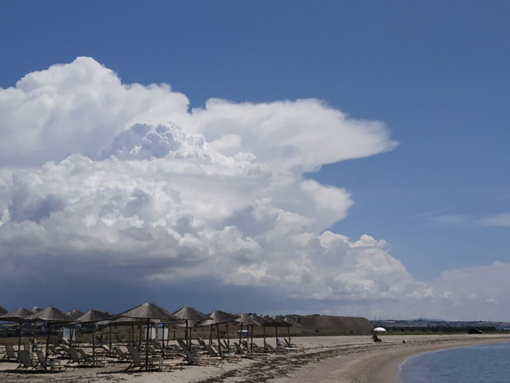 Ένας επιβλητικός σωρειτομελανίας, το κατεξοχήν καταιγιδοφόρο νέφος του καλοκαιριού, δεσπόζει στον ουρανό της Χαλκιδικής. Οι ξαφνικές καταιγίδες, είναι πολύ συχνό φαινόμενο κατά τον Μάη σε πολλές περιοχές!