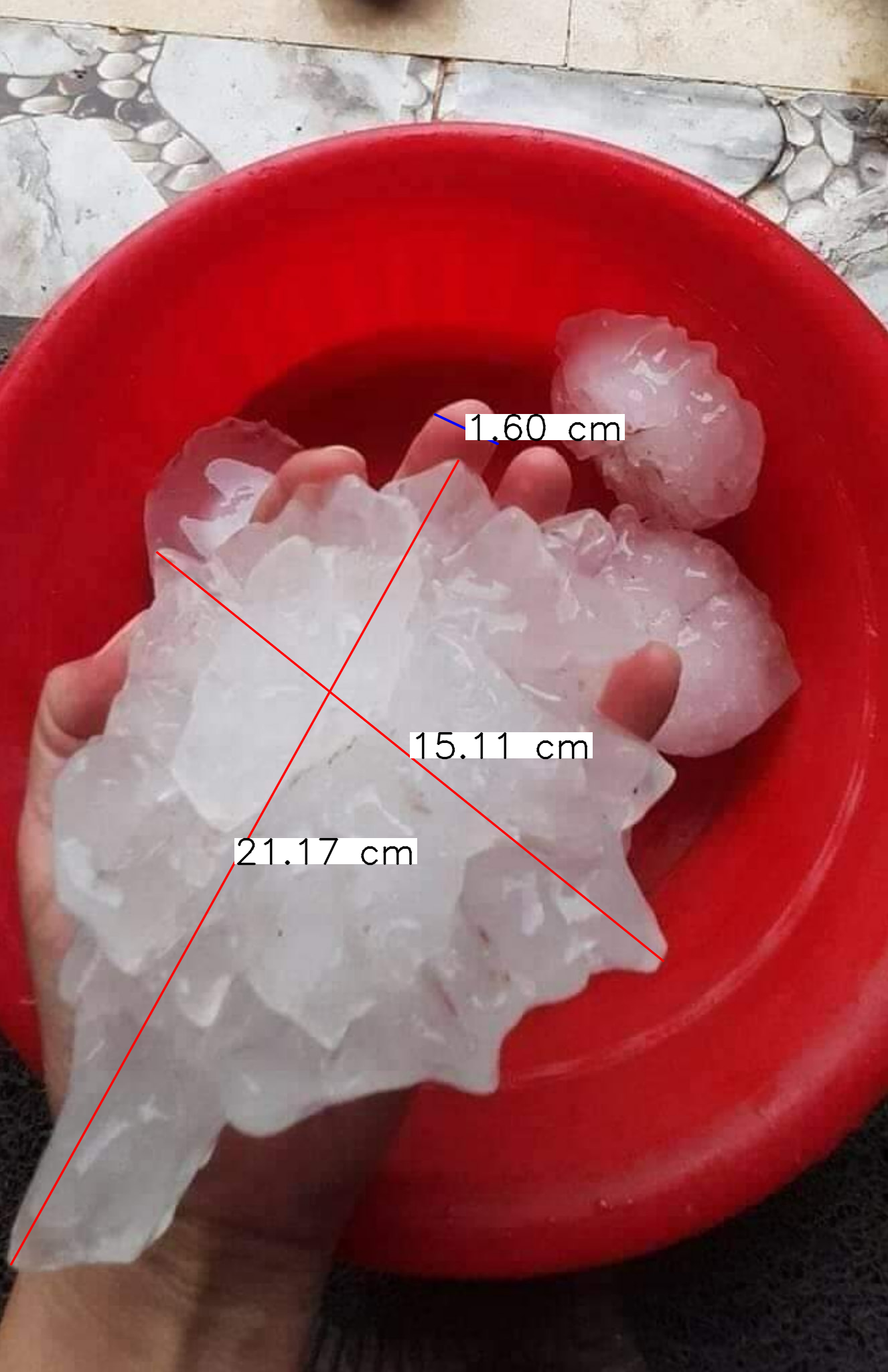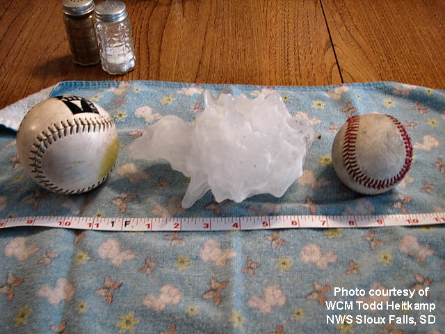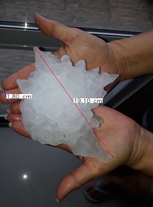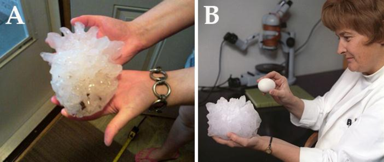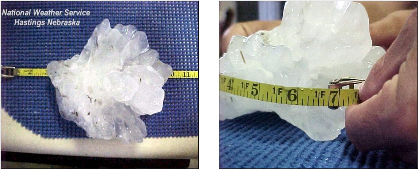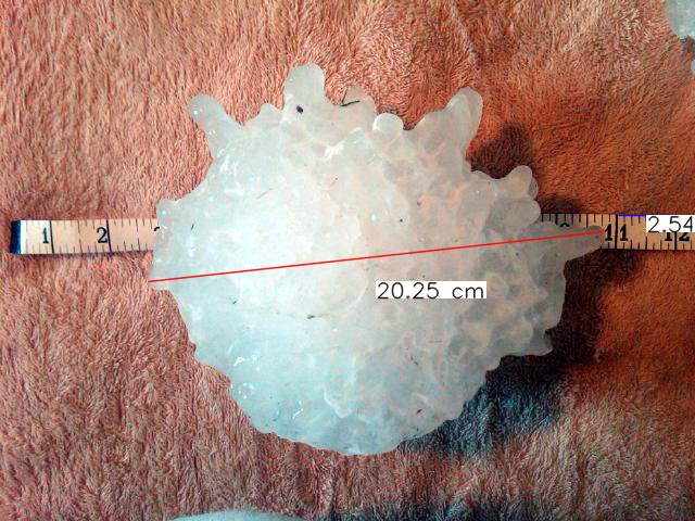 Η οποια κατεχει και το ρεκορ μεγαλυτερου χαλαζιου. Παρακατω παρατιθενται τα επεισοδια με τις μεγαλυτερες διαμετρους χαλαζοκοκκων παγκοσμιως: