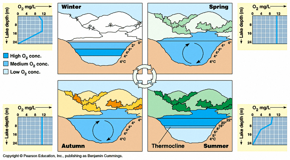 Γιατι η επιφανεια μιας λιμνης παγωνει πρωτα, μετα παγωνουν τα μεσαια βαθη και στο τελος μετα απο πολλες εβδομαδες και εαν η παγωνια εχει συνεχιστει, τοτε παγωνει και ο βυθος? Γιατι υπαρχει αυτη η συμπεριφορα και δεν παγωνει πρωτα ο βυθος? Και γιατι παιρνει πολλες εβδομαδες με παγωνια ωστε να φτασει ο παγος στον βυθο? Μια συμπεριφορα που ειναι σωτήρια για τα ψαρια και ολα τα οντα που ζουνε στην λιμνη αφου σε διαφορετικη περιπτωση ολα θα πεθαιναν σε καθε παγετο 1-2 εβδομαδων, κατι που δεν γινεται.