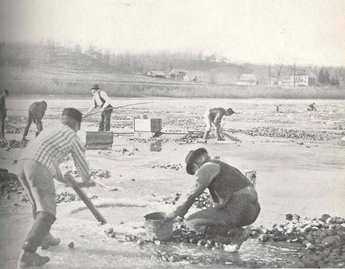 Ποταμος Μισισιπης τον χειμωνα του 1898-1899 και προσπαθειες για ψαρεμα μυδιων πανω στα παγωμενα νερα του.