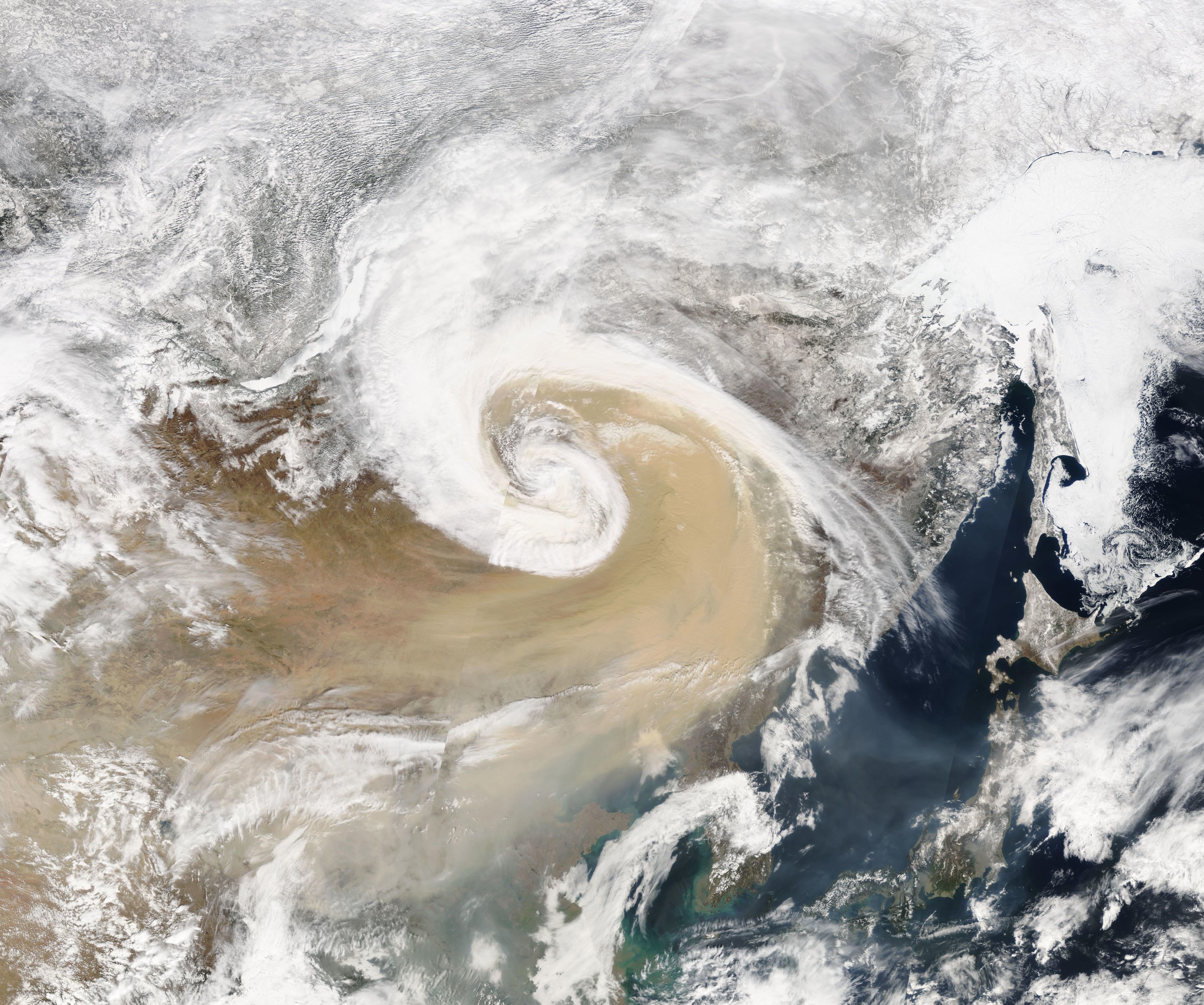 Τον Απριλη του 2001 ενας κυκλωνας στην Κινα προκαλεσε τεραστιες αμμοθυελλες που μπλοκαραν για πολλες μερες τον ηλιο σε ενα μεγαλο μερος της Κινας και οι οποιες αμμοθυελλες εφτασαν ως τις ΗΠΑ. Τετοιες αμμοθυελλες στην Κινα πλεον συμβαινουν αρκετα συχνα, σχεδον σε ετησια βαση, ενω ιστορικα συνεβαιναν με συχνοτητα 30ετιας.
