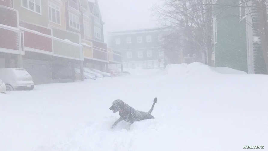 A dog is seen in a blizzard in St John’s, Newfoundland and Labrador, Canada January 17, 2020 in this image obtained from social media. Max Liboiron/via REUTERS THIS IMAGE HAS BEEN SUPPLIED BY A THIRD PARTY. MANDATORY CREDIT. NO RESALES. NO ARCHIVES.