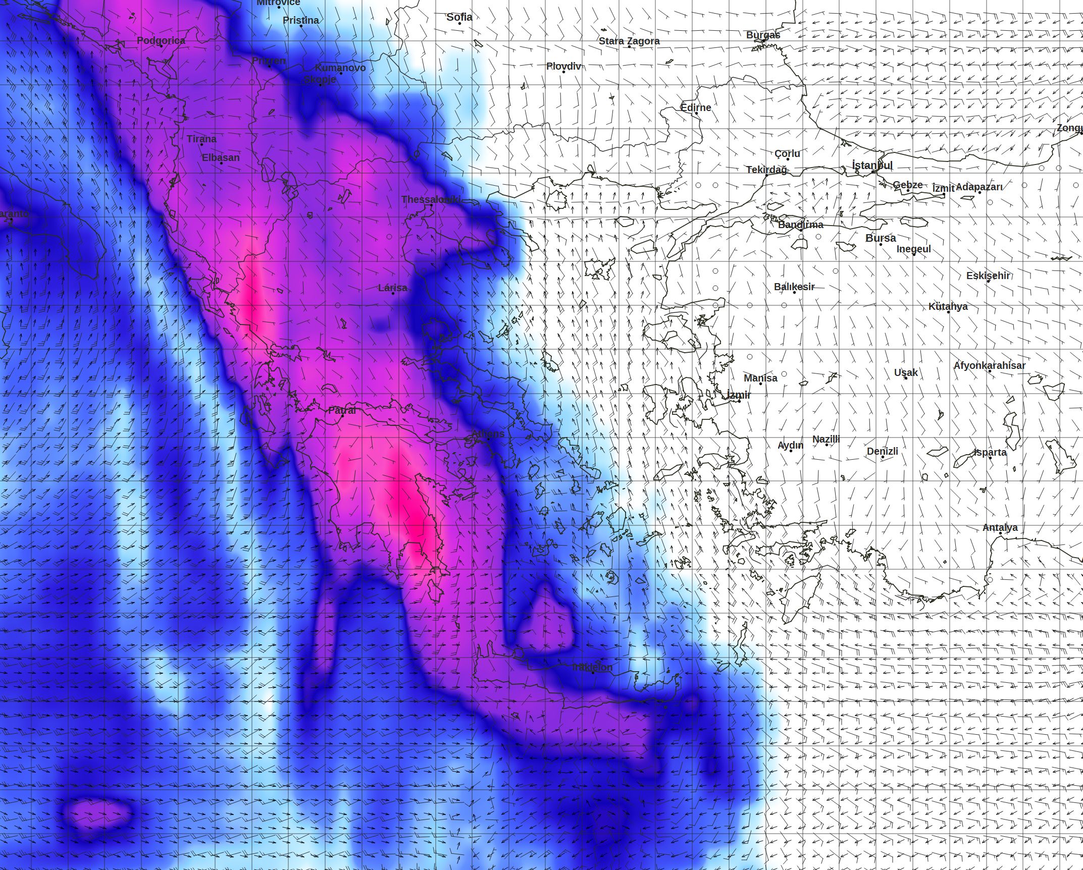 Παρά τα όσα λέγονται πάντως, το μέτωπο αυτό, δεν θα φέρει καιρικά φαινόμενα τέτοια ώστε να προκαλέσει εκτεταμένα προβλήματα. Οι ΑΝΑ άνεμοι, θα δώσουν μεγάλα ύψη νερού σε ανατολική ΠΕΛΟΠΟΝΝΗΣΟ, δυτικά τμήματα της ΚΕΝΤΡΙΚΗΣ ΜΑΚΕΔΟΝΙΑΣ και πρόσκαιρα στην ΣΤΕΡΕΑ και την δυτική χώρα. Για την δυτική χώρα συγκεκριμένα, παρά τις δυσοίωνες προβλέψεις των μοντέλων, θεωρώ πως οι ΝΑ άνεμοι και η σχετικά περιορισμένη αστάθεια, θα αποτρέψουν την εκδήλωση καιρικών φαινομένων τέτοιων ώστε να προκαλέσουν προβλήματα τουλάχιστον σε μεγάλη κλίμακα.