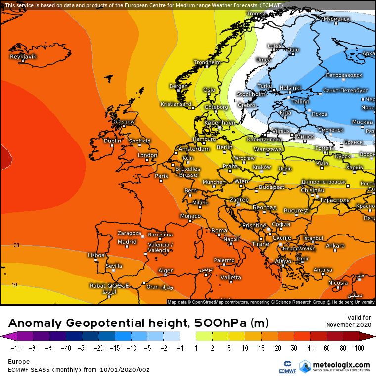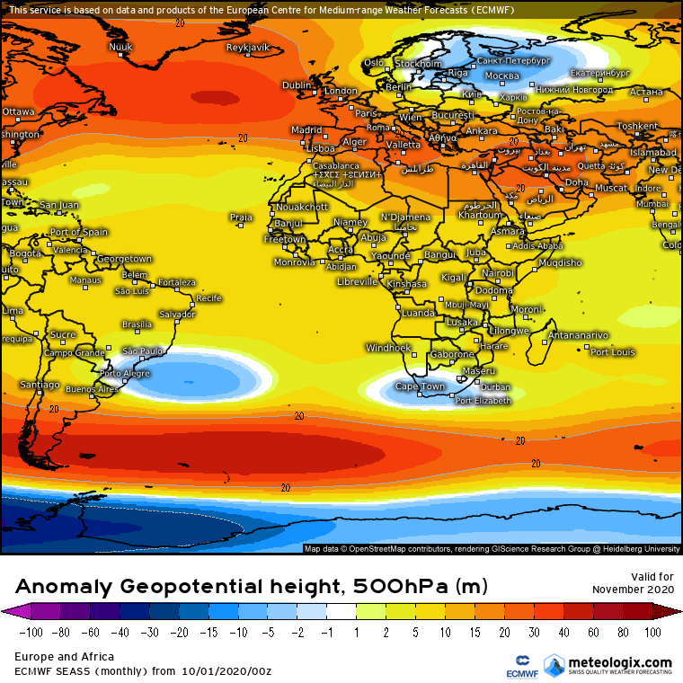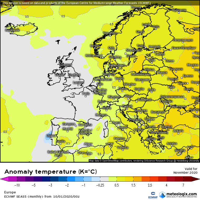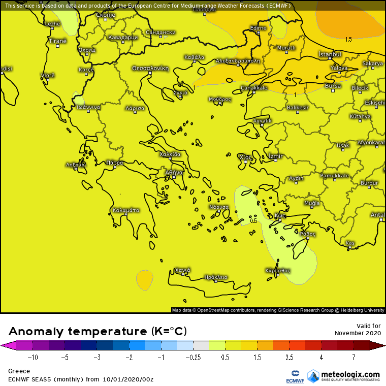 Προβλεψη Νοεμβριου 2020 απο το μακροπροθεσμο SEAS5 του Ευρωπαικου κεντρου καιρου(ECMWF):