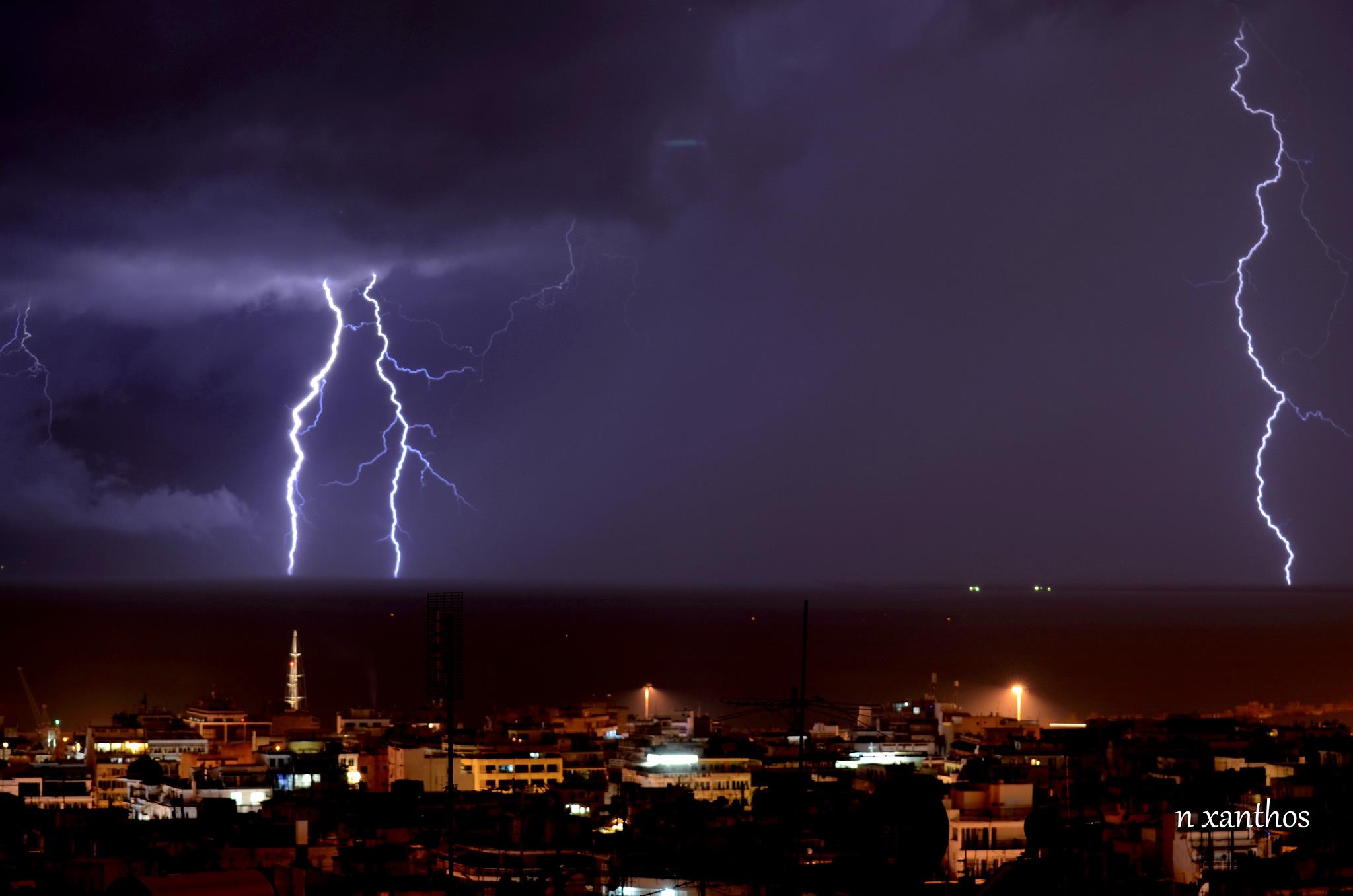 Παρακατω θα παρατεθουν εικονες απο καταιγιδες, και κυριως νυχτερινες καταιγιδες, στην πολη της Θεσσαλονικης και περιξ, δηλαδη στον Θερμαϊκο κολπο, τραβηγμενες απο το Καλοχωρι, την Καλαμαρια, τα Καστρα κλπ, τις οποιες εβγαλε ο εκπληκτικος φωτογραφος καταιγιδων, ουρανου, της φυσης και οχι μόνο, Νικος Ξανθός.