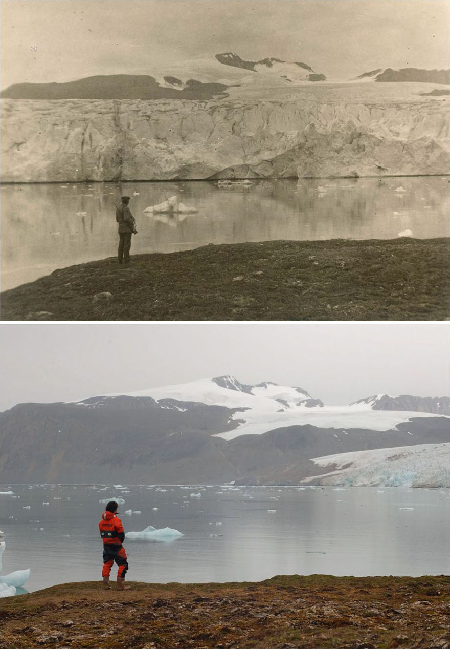 Οταν λοιπον ειδε μερικες φωτογραφιες απο το Νορβηγικο Ινστιτουτο για τον Βορειο Πολο(Norwegian Polar Institute), απο το Σβαλμπαρντ στην Αρκτικη που ειχαν τραβηχτει κοντα στο 1900 εως 1902, προσπαθησε να βρει ακριβως απο που τραβηχτηκαν καθως και να παει την ιδια περιοδο και να τραβηξει και αυτος φωτογραφιες γαι συγκριση.