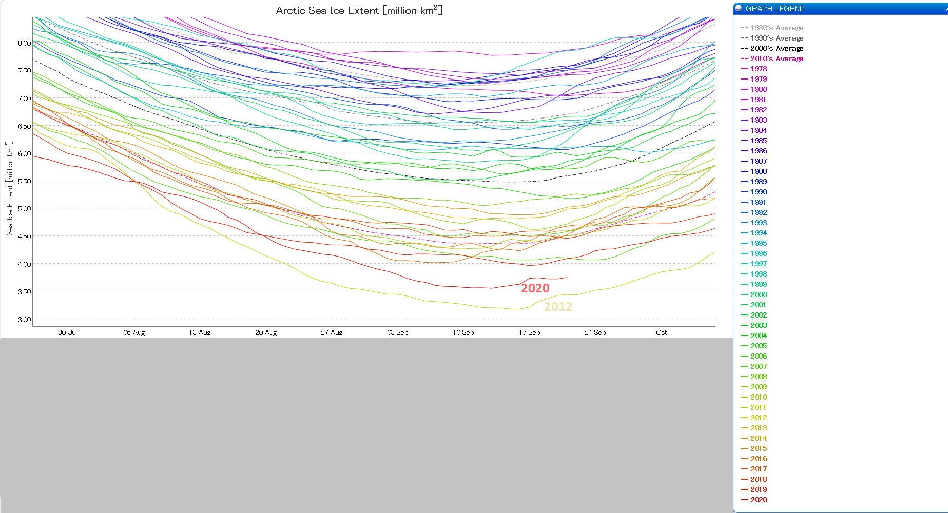 Εκταση παγοκαλυψης απο την Ιαπωνικη JAXA(που εχει την καλυτερη αναλυση των δορυφορων της ως προς την παγοκαλυψη σε Αρκτικη).