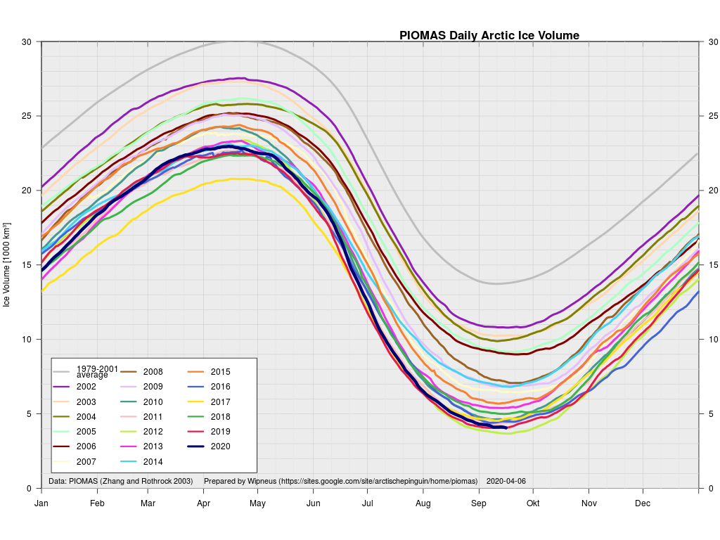 Ογκος παγοκαλυψης απο το μοντελο PIOMAS.