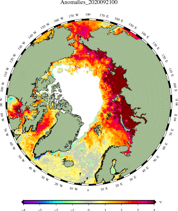 Αποκλισεις θερμοκρασιων θαλασσων στον βορειο πολο. Μια ανευ προηγουμενου κατασταση επικρατει τα τελευταια χρονια.