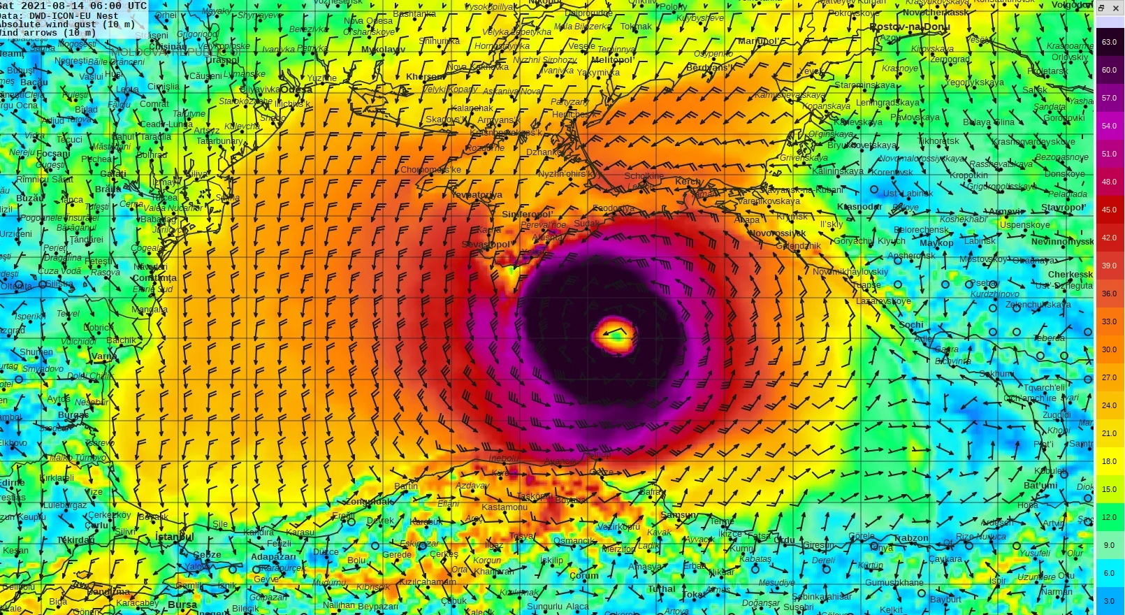 Από τους καύσωνες στους… τροπικούς κυκλώνες! Αυτό τουλάχιστον ισχύει για τον Εύξεινο Πόντο την Μαύρη θάλασσα, όπου υπάρχει ανοικτό το σενάριο για δημιουργία εξωτροπικού κυκλώνα ( Medicane ) η μάλλον καλύτερα…Blackseacane μιας και βρίσκεται στην Μαύρη Θάλασσα. Τα τωρινά στοιχεία θέλουν τους ανέμους μέσα σε αυτον να ξεπερνάνε και τα 180km/h ενώ έως και 200-300 χιλιοστά βροχής αναμένεται να πέσουν σε περιοχές της βόρειας Τουρκίας. Η όλη κατάσταση δείχνει από νωρίς το τι θα ακολουθήσει.