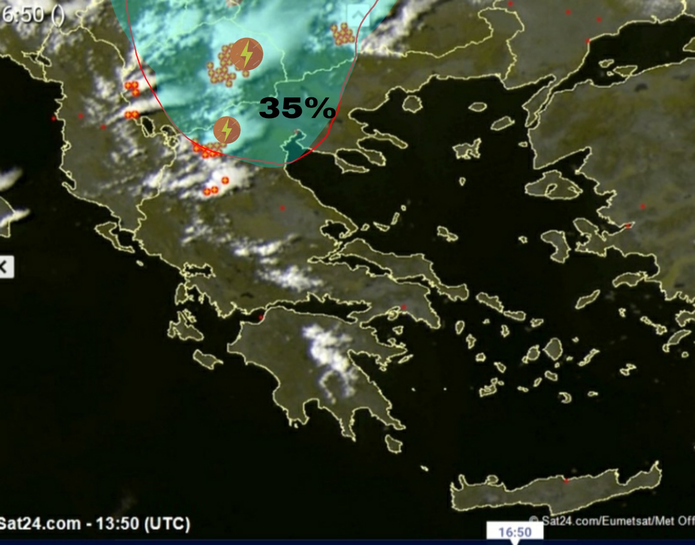 Μια ελαφριά νοτιότερη πορεία της μεγάλης διαταραχής που το τελευταίο 24ωρο δίνει ισχυρές καταιγίδες στα Βαλκάνια, φαίνεται να είναι η αιτία που θα δώσει πιθανότητες για βραδυνου τύπου Μπόρες στην κεντρική Μακεδονία. Παρότι οι πιθανότητες είναι αρκετά μικρές ( 30-40%) , αξίζει να τονιστεί το ενδεχόμενο αυτό. Οι ίδιες πιθανότητες υπάρχουν και για την Θεσσαλονίκη μέσα στο βράδυ, για εκδήλωση μπόρας η και σύντομης καταιγίδας. Τα φαινόμενα αυτά πάντως εάν σημειωθούν , μέχρι τα ξημερώματα θα έχουν σταματήσει παντού και η Κυριακή θα επιστρέψει σε ηλιόλουστο μοτίβο.
