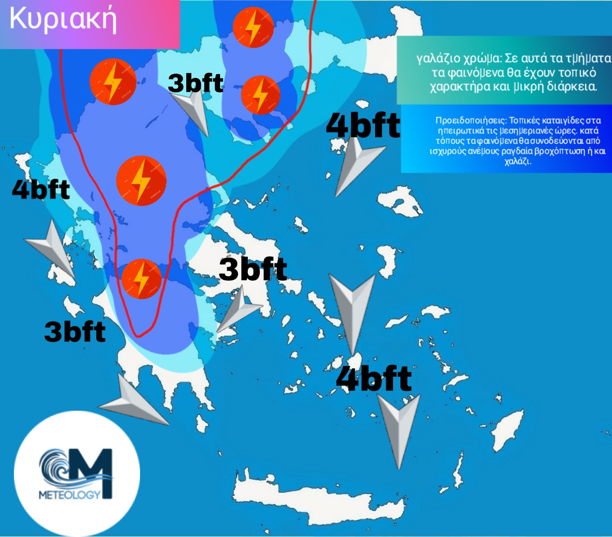 Καταιγίδες είχαμε τις νυχτερινές ώρες σε αρκετές περιοχές της Μακεδονίας με έμφαση το εσωτερικό της Χαλκιδικής και την περιοχή του Στρυμωνικού κόλπου. Ο Βαρδάρης που τελικά φυσάει στον Θερμαϊκό , δεν επέτρεψε την ανάπτυξη καταιγίδων στην ευρύτερη περιοχή, παρά την πλήρη συμφωνία των δεδομένων για κάτι τέτοιο. Επόμενες ώρες: Στον χάρτη Φαινομένων, βλέπουμε τον μπλε χρωματισμό που καλύπτει το σύνολο των ηπειρωτικών τμημάτων. Σε αυτές τις περιοχές, προς το μεσημέρι και το απόγευμα, ο ήλιος θα δώσει την θέση του σε άστατο καιρό με μπόρες και τοπικές καταιγίδες. Τα φαινόμενα ενδεχομένως να είναι έντονα και να έχουν διάρκεια. Στις περιοχές με αχνό χρωματισμό γαλάζιο, η πιθανότητα για αντίστοιχα φαινόμενα είναι σημαντικά μικρότερη. Στην Χαλκιδική, ο καιρός θα καταστεί και εδώ άστατος με μπόρες και τοπικές καταιγίδες, παρά το γεγονός ότι οι καταιγίδες του ξημερώματος, αναπτύχθηκαν τελικά στο εσωτερικό του νομού και στα ανατολικά παράλια.