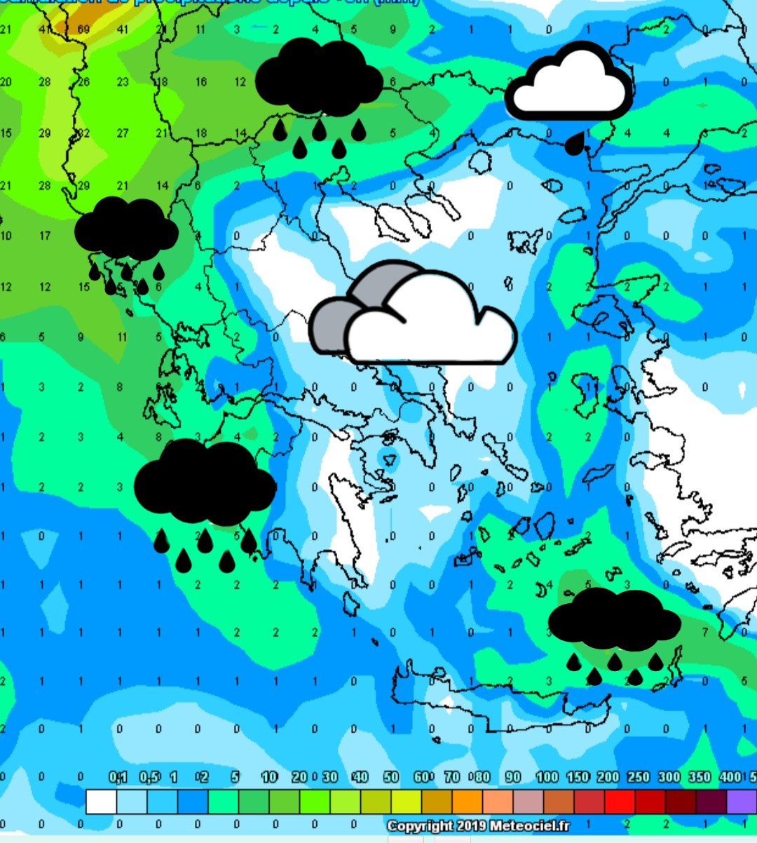 Ένα πέρασμα μιας ρηχής διαταραχής, από το βράδυ της Παρασκευής έως το μεσημέρι του Σαββάτου, θα πρέπει να δώσει τοπικές βροχές ( χάρτης) σε δυτική και βόρεια χώρα. Ανάλογα φαινόμενα θα απασχολήσουν και το ανατολικό και νότιο Αιγαίο. Αυξημένες συννεφιές στη ΘΕΣΣΑΛΟΝΊΚΗ με τοπικές βροχές το πρωί του Σαββάτου και βελτίωση αργότερα. Ασθενείς άνεμοι με την θερμοκρασία στους 9-10 βαθμούς. Αραιές συννεφιές με πιθανό ψιχαλισμα και στην ΑΤΤΙΚΉ με την θερμοκρασία στους 13-15 βαθμούς το μεσημέρι. Η Κυριακή θα κυλισει με καλό καιρό σε όλη την χώρα.