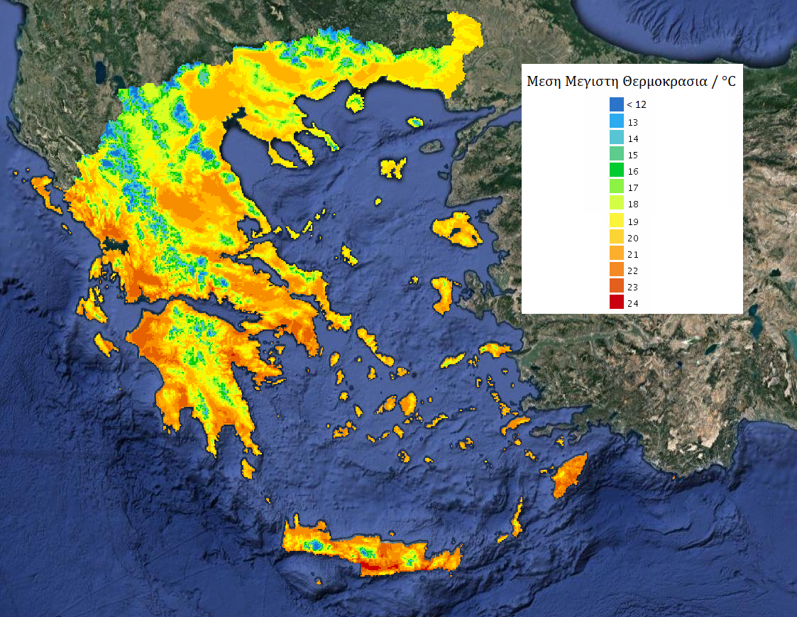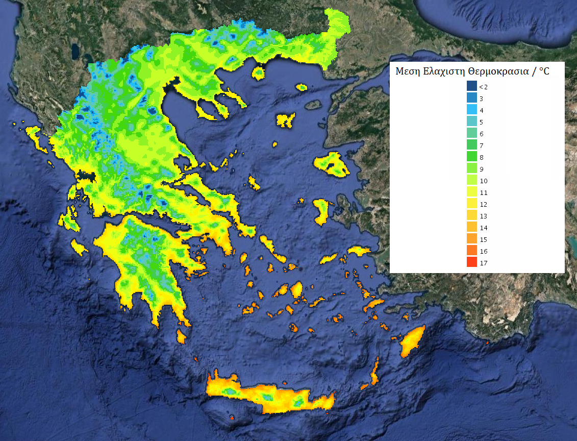 Και 2 χαρτες που δειχνουν ενδεικτικα την κυμανση των μεσων ελαχιστων και των μεσων μεγιστων ανα ετος: