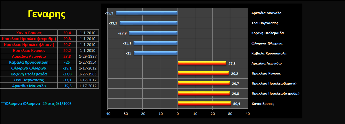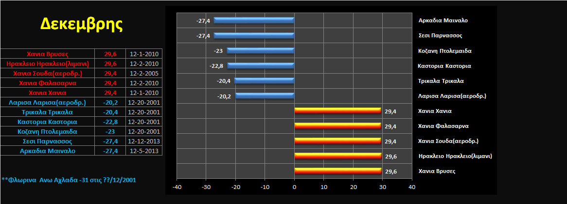 Μπορουμε να παρατηρησουμε οτι πολλα ρεκορ χαμηλοτερων θερμοκρασιων εχουν σημειωθει τα τελευταια χρονια. Αυτο δεν ισχυει διοτι συμβαινουν ολοενα και περισσοτερα ψυχρα ρεκορ στην Ελλαδα, αλλά γιατι τα τελευταια 10 χρονια οι τοποθετησεις μετεωρολογικων σταθμων ολοενα και αυξανονται και τοποθετουνται πολλοι σταθμοι στα βουνα. Ετσι πλεον μπορουμε να βλεπουμε το κλιμα της Ελλαδας με πολυ καλυτερη ακριβεια και να βλεπουμε θερμοκρασιες που αγνοουσαμε εως τωρα οτι συμβαινουν.