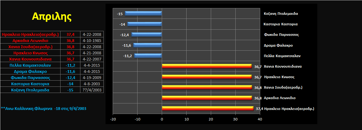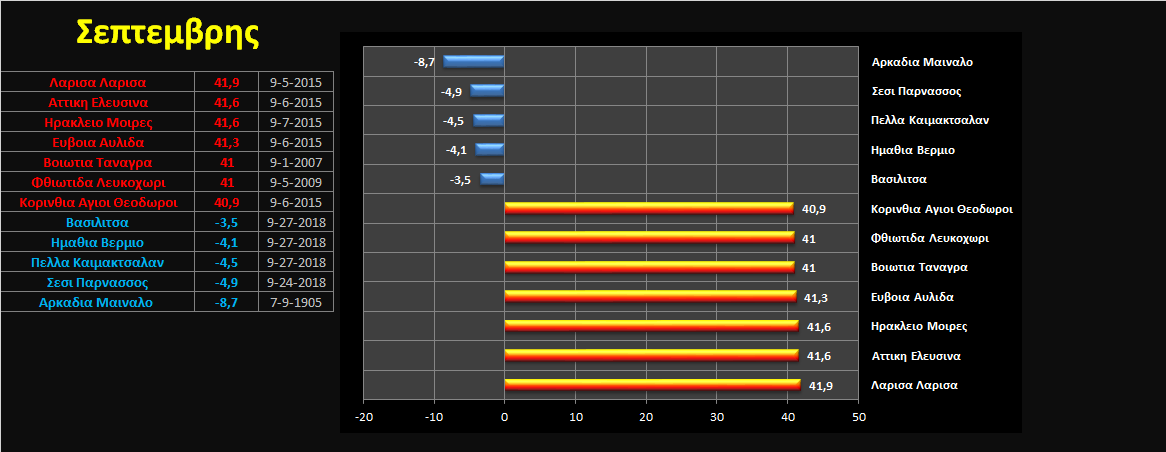 Παρακατω θα δωθουν τα απολυτα θερμοκρασιακα ρεκορ της Ελλαδας ανα μηνα. Και οι μεγιστες τιμες θερμοκρασιας που εχουν παρατηρηθει αλλά και οι ελαχιστες για καθε μηνα.