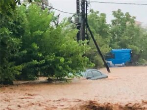 Η ποσότητα νερού που έχει πέσει από εχθές το βράδυ στην περιοχή είναι τεράστια με αποτέλεσμα να έχουν πλημμυρίσει σπίτια, αυλές,και ολόκληρα χωριά – περιοχές.