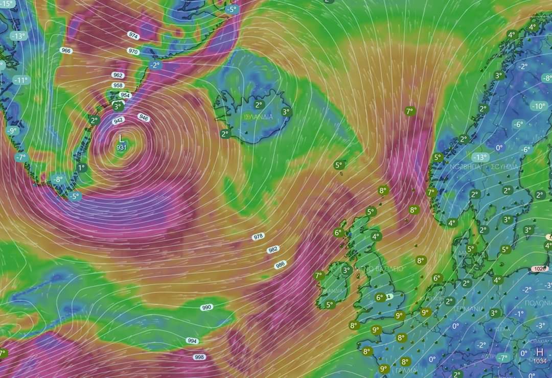 Αξίζει τέλος να σημειωθεί, πως θα καταγράφει εντυπωσιακός κυματισμός σε Βισκαϊκο Κόλπο και Ιρλανδία, με τα κύματα να ξεπερνούν τα 10-14 μέτρα σε ύψος.