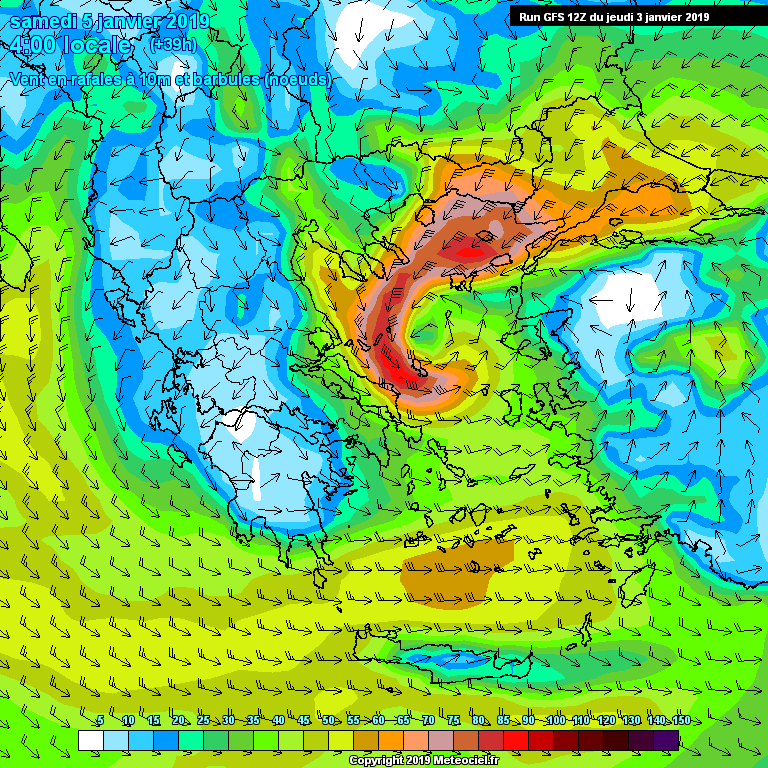 Αξίζει να σημειωθεί, πως για παράδειγμα, στις Σποράδες, για κάποιες ώρες το βράδυ της Παρασκευής, η ένταση των ανέμων, θα ξεπεράσει τα 10 μποφόρ, συνοδεία σφοδρής χιονο-βροχοθύελλας, ίσως και χιονοκαταιγίδας. Μια μικρογραφία ενός τυφώνα λοιπόν, με χαρακτηριστικά πολικής δίνης! Την ίδια ώρα, η σύγκλιση του βαρδάρη με τους θυελλώδεις ΒΑ ανέμους στην νότια Χαλκιδική, θα προκαλεί έντονη νεφογέννεση και πολύ πυκνές χιονοπτώσεις σε κεντρική Μακεδονία και Χαλκιδική φυσικά.