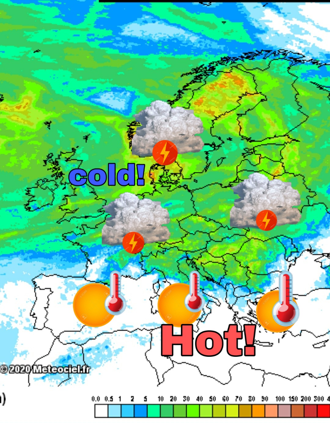Αντίθετα, η νότια Ευρώπη και η Μεσόγειος, αναμένεται να βρεθούν στον θερμό τομέα αυτής της κατάστασης. Η ανάπτυξη ενός ήπιου αντικυκλωνικού πεδίου, θα επιτρέψει στις θερμές αέριες μάζες από την Αφρική να κατακλύσουν όλο τον ευρωπαϊκό Νότο, με κύρια χαρακτηριστικά τις υψηλές θερμοκρασίες και την ξηρασία. Παρότι ακόμη δεν έχει ξεκαθαρίσει η ένταση τους, εντούτοις υπάρχουν ανοικτά τα ενδεχόμενα η θερμή αυτή αέρια μάζα να εξελιχθεί ακόμη και σε κύμα καύσωνα στην Μεσόγειο και τις χώρες που βρέχονται από αυτήν. Χρονικά αυτό τοποθετείται στις τελευταίες ημέρες Ιούλη έως και το πρώτο πενθήμερο του Αυγούστου.
