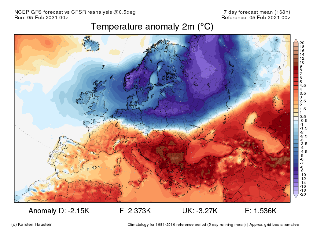 Αποκλισεις θερμοκρασιων τις επομενες 7 ημερες. Βλεπουμε το φοβερο “ψησιμο”, με εκτός εποχης υψηλες θερμοκρασιες για ακομα μια φορα τον φετινο χειμωνα στην Ελλάδα και οχι μόνο αυτη τη φορα.