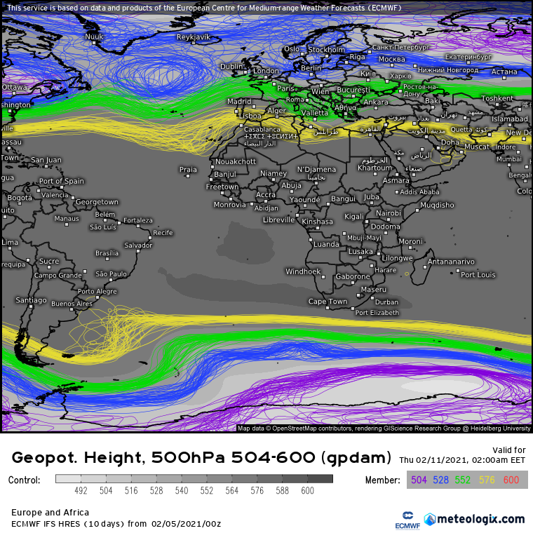 Το Ευρωπαικο μοντελο και τα ενσεμπλς του καθως και το μοντελο ΟΥΚΜΟ δινουν τους 2 κυματισμους αρκετα πιο μακρυα μεταξυ τους, σε πληρη αντιθεση με το μοντελο GFS και τα ενσεμπλς του.