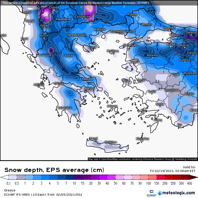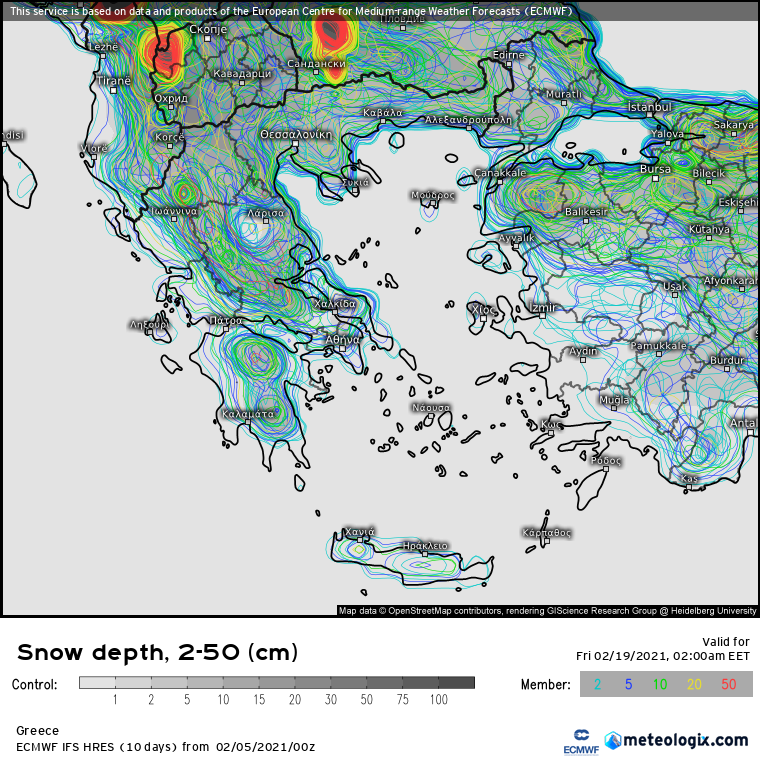 Εδω δινονται και απο τα ενσεμπλς του Ευρωπαικου τα υψη χιονοστρωσης για 14 μερες μετα(καθε μελος τι δινει καθως και ο μεσος ορος των 50 μελων τους) που βεβαια μπορουν να χρησιμοποιηθουν μόνο ενδεικτικα για μια εποπτικη εικονα του τι σεναρια επικρατουν σε καθε τρεξιμο.