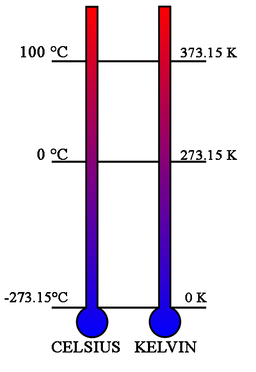 Ετσι το απολυτο μηδεν θερμοκρασιας, η ελαχιστη θερμοκρασια δηλαδη που μπορει αν υπαρξει στον κοσμο ειναι οι 0 βαθμοι Κελβιν (0 Κ) ή ισοδυναμα οι -273.15 βαθμοι Κελσιου (-273.15 °C).