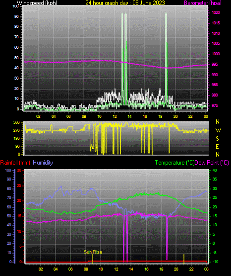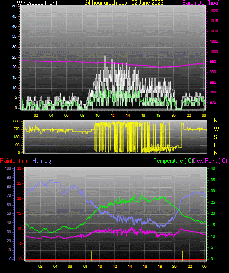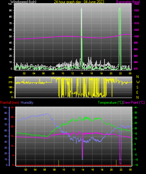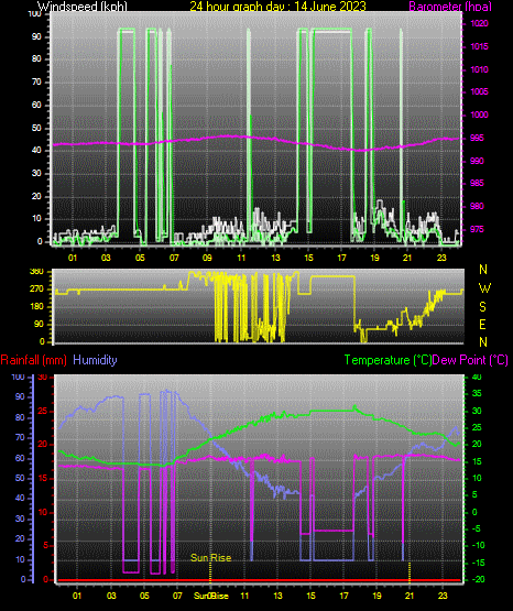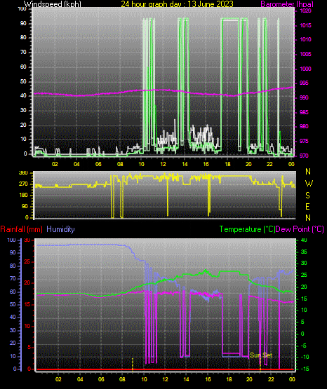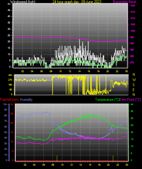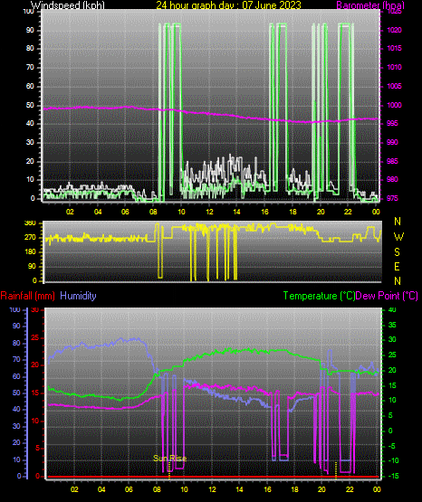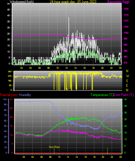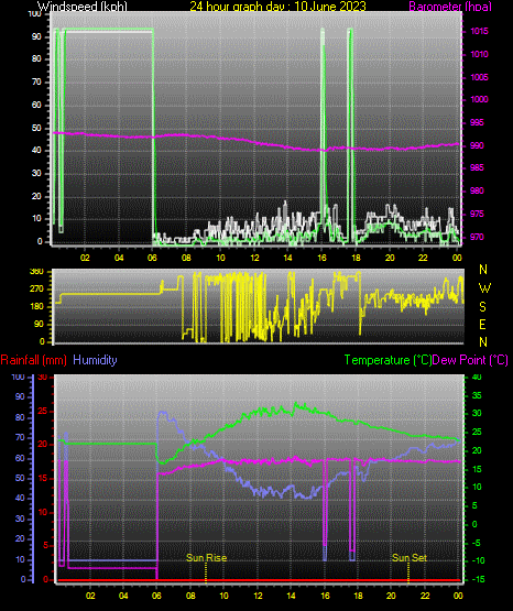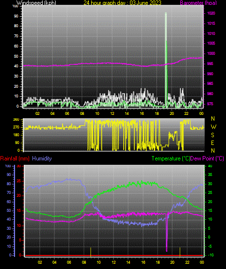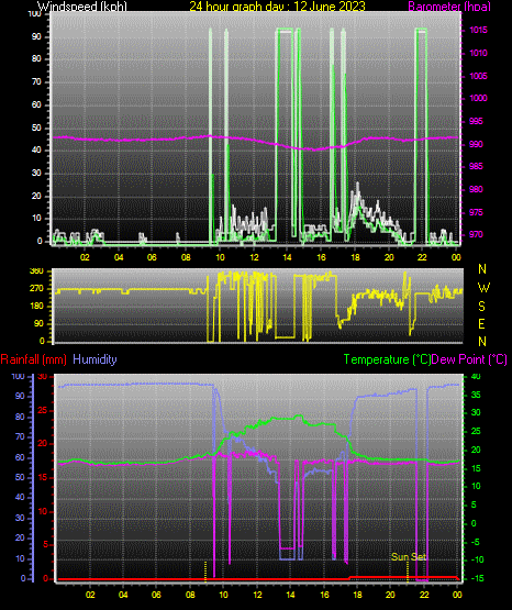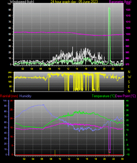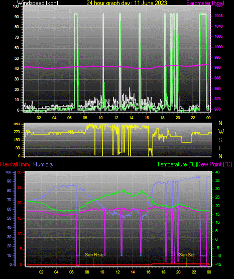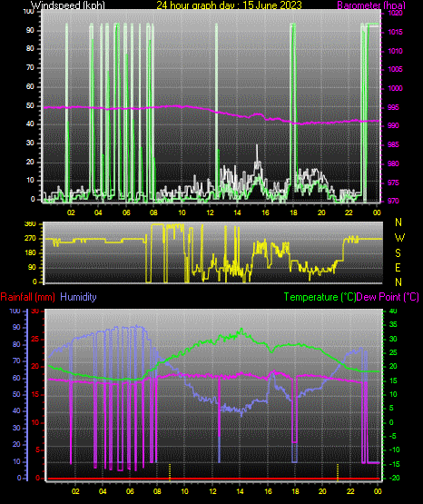 | Maximum windspeed | 92.5 kmh from 270°(W) on 16 at 00:06 |