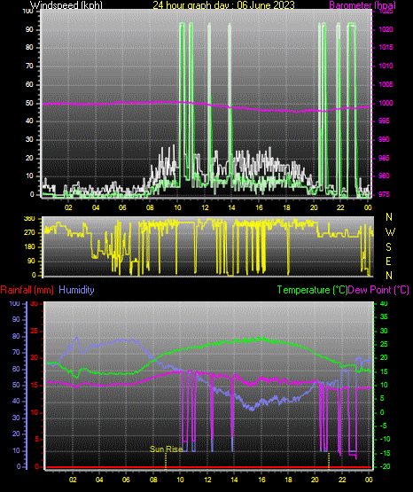 | Maximum gust speed | 92.5 km/h from 248°(WSW) on 05 at 21:18 |