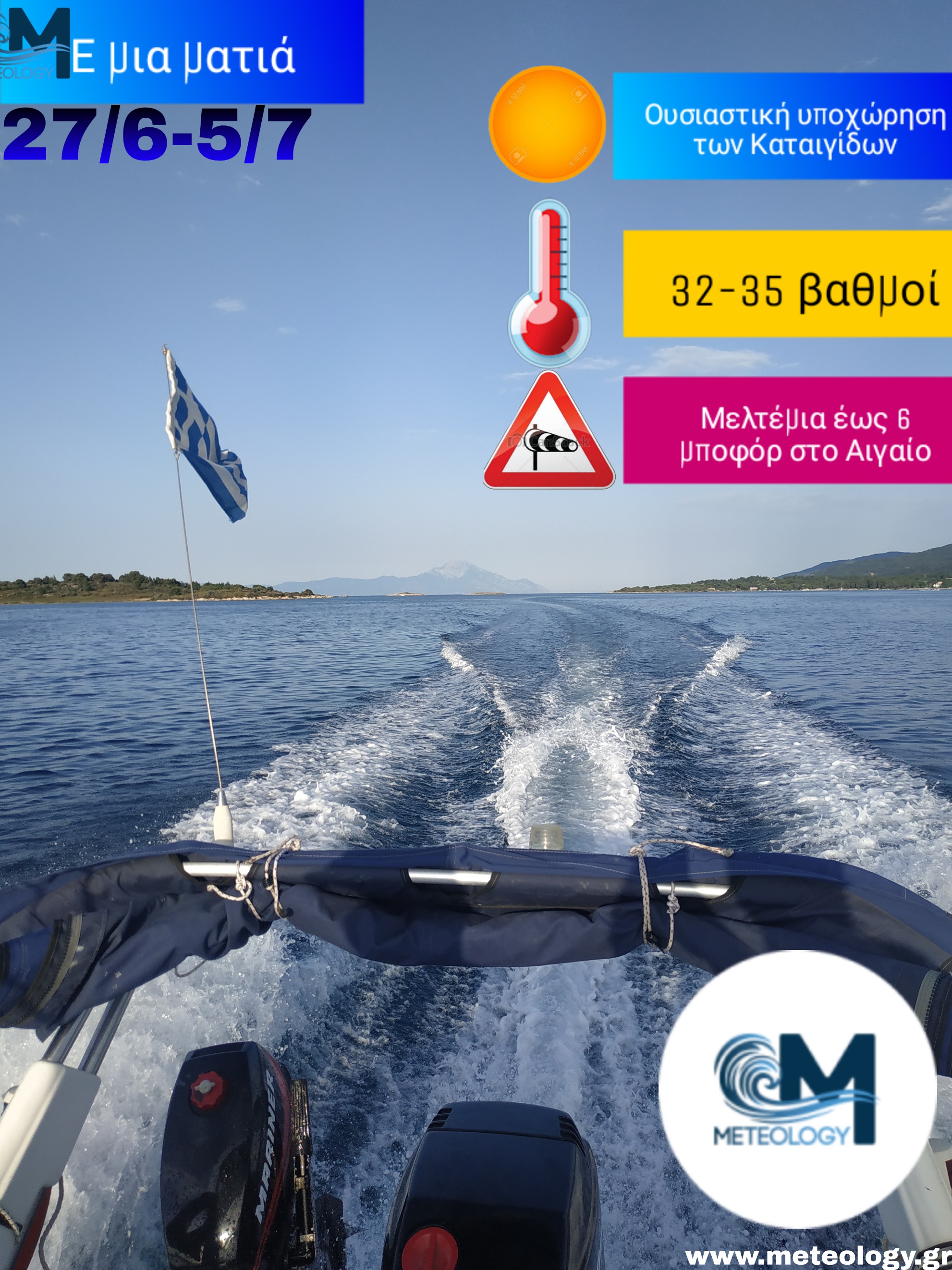 Η ηλιοφάνεια και η σταδιακή σημαντική άνοδος της θερμοκρασίας, θα είναι τα κύρια χαρακτηριστικά του καιρού από το Σάββατο και τουλάχιστον έως τις πρώτες μέρες του Ιούλη. Όλα δείχνουν πως το καλοκαίρι τελικά ξεκινάει , με το κλασικό μελτέμι να κάνει την παρθενική του εμφάνιση στο Αιγαίο. Η θερμοκρασία θα πάρει και αυτή την ανιούσα, με τις μέγιστες να φτάνουν και τους 34 με 35 βαθμούς στις κλασικές στην ζέστη περιοχές.
