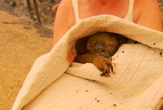 Πολλά ζώα έχουν απανθρακωθεί στη φωτιά ενώ τα κοάλα είναι πιο ευάλωτα. Το βίντεο δείχνε μια γυναίκα, που βλέποντας το ζώο να κινδυνεύει, τρέχει για να το σώσει και το τυλίγει με το πουκάμισό της. Στη συνέχεια δίνει στο κοάλα λίγο νερό και μετά βρέχει τα καμμένα πόδια του ενώ αυτό ακούγεται να κλαίει από τον φόβο και τον πόνο.