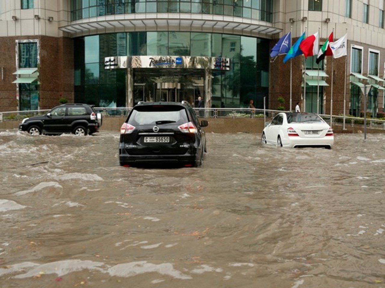 Ηνωμενα Αραβικα Εμιρατα μεσα καλοκαιριου. Πρωτογνωρες πλημμυρες.